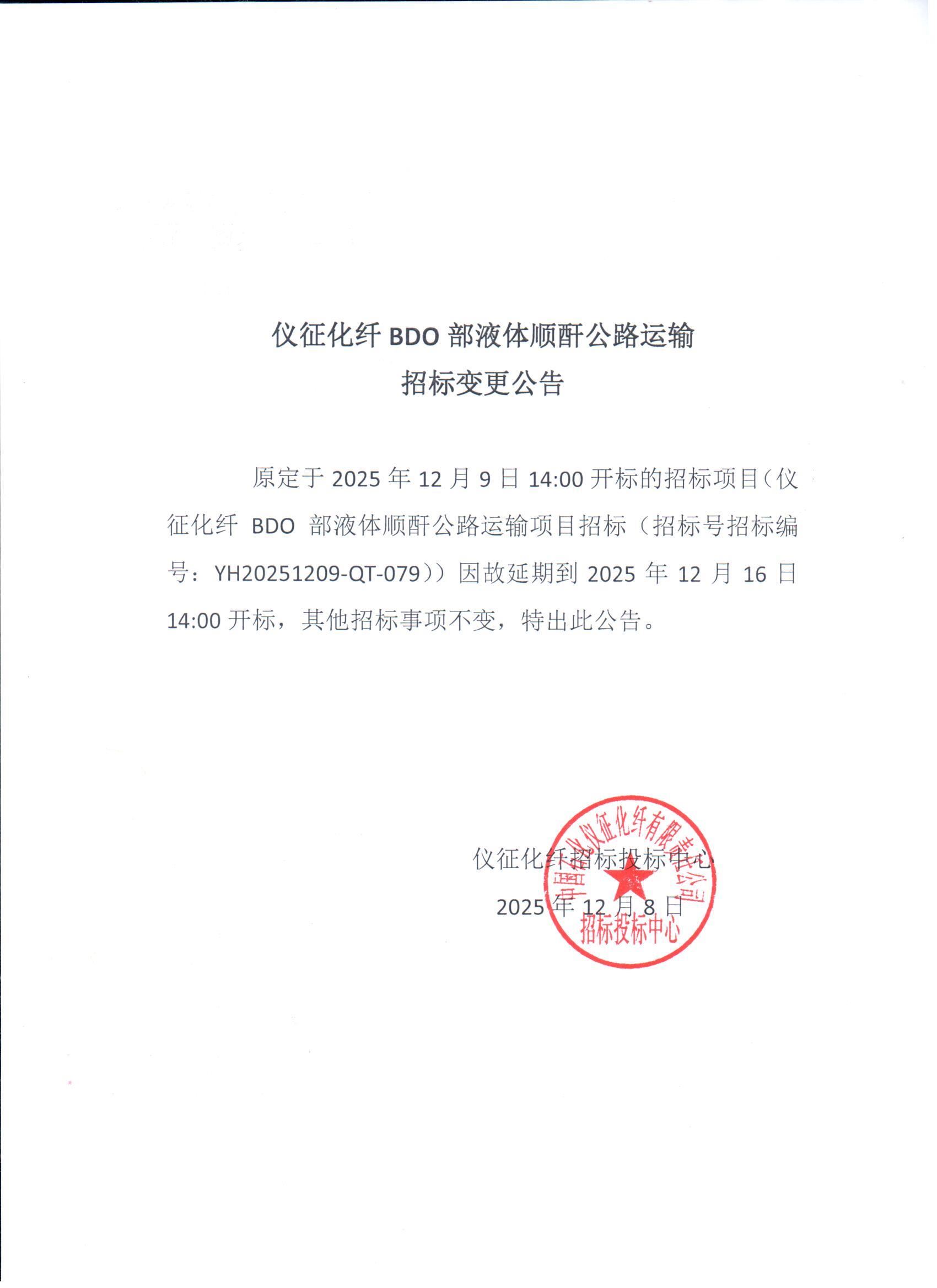 仪征化纤BDO部液体顺酐公路运输招标变更公告